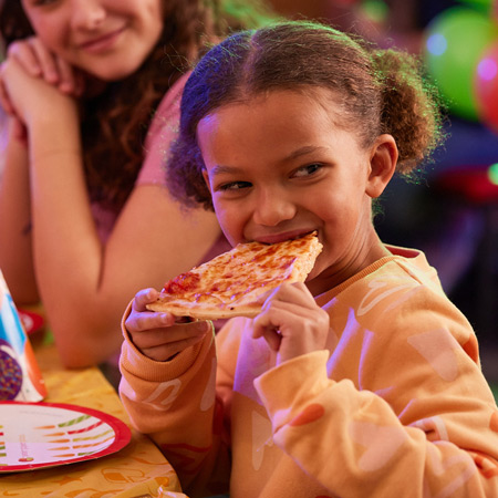It all starts with our handcrafted pizza on dough that’s made-from-scratch daily, topped with 100% real mozzarella cheese—because great pizza (and great times) start fresh. Then we add drinks with unlimited refills to keep every kid refreshed and ready for more.